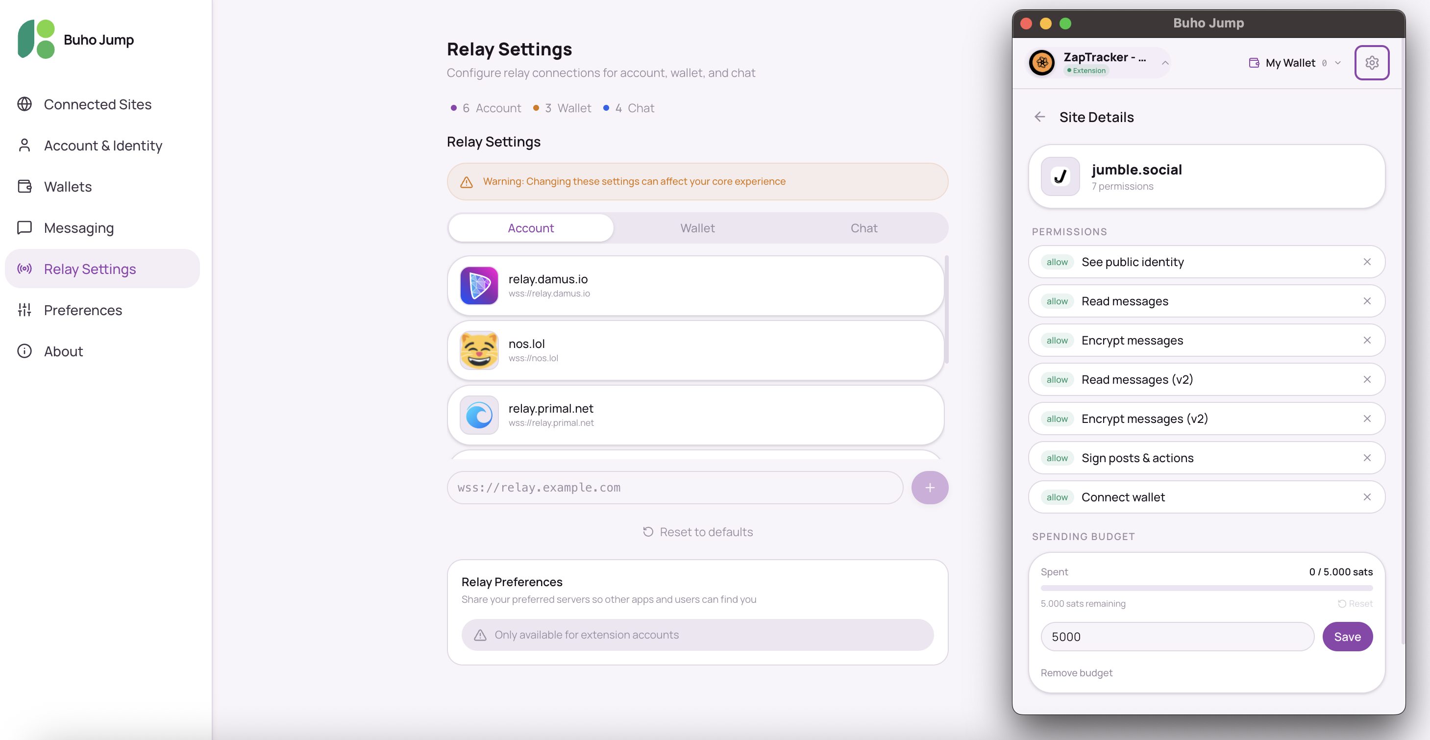 Send and receive end-to-end encrypted messages directly from the extension. Private chats, group conversations, relay communities, and open channels. Get notified at your desk, reply instantly, send zaps from the chat.