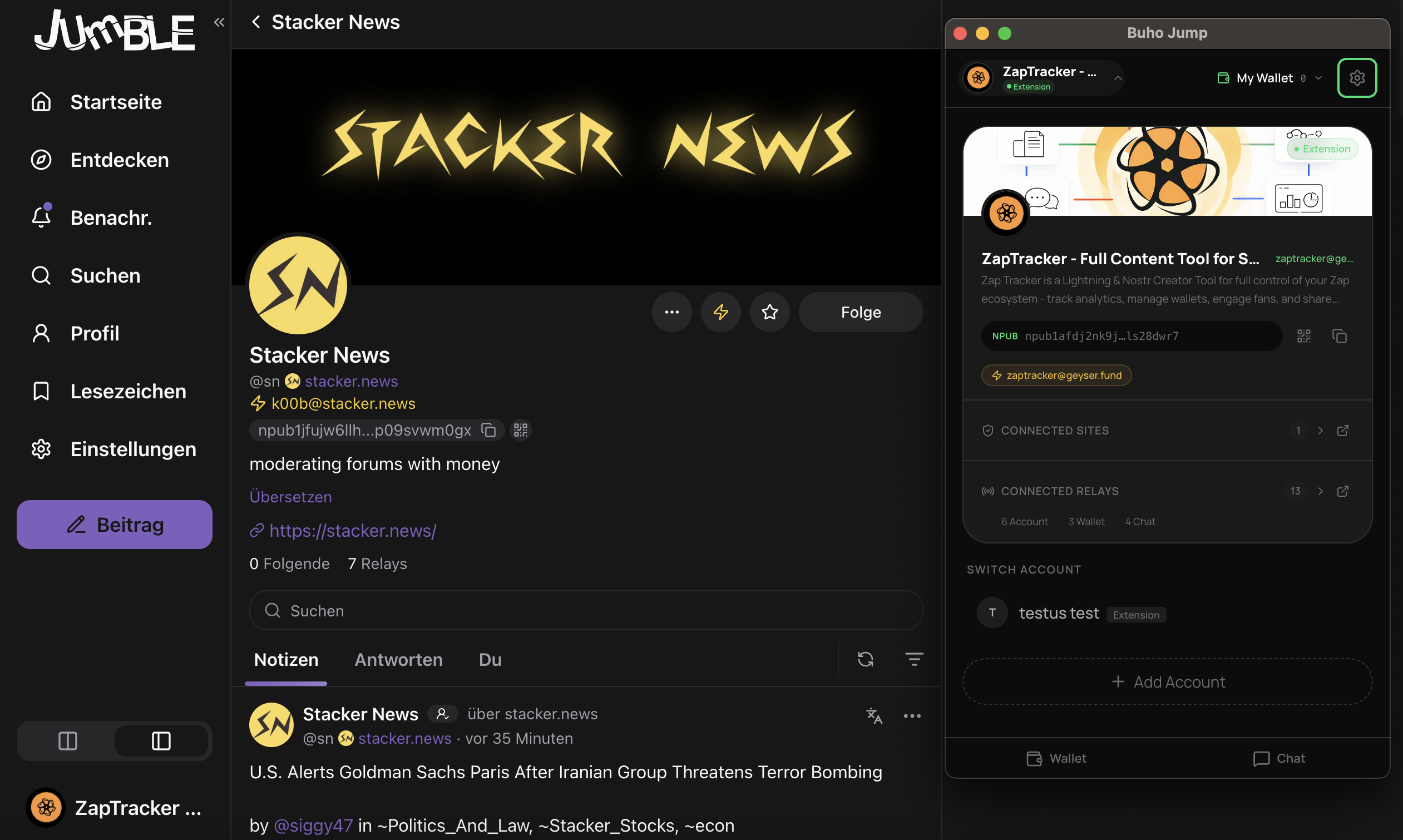 Switch between personal and professional Nostr accounts with one tap.
